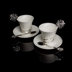 Set of six mouth-blown, hand-cut clear crystal tea cups and saucers. The crystal cups are designed to endure the water lower than 80 °C in order to achieve the best brew tea.