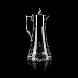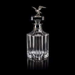 Mouth-blown and hand-cased green crystal. Set includes the vodka decanter and four vodka shot glasses.
