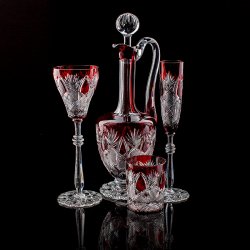 The Czar Imperial pattern was originally made for Czar Nicholas II over one hundred years ago. Mouth-blown and hand-cut ruby red cased crystal.