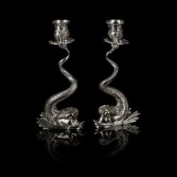 Hand-made sterling silver caviar with a mouth-blown clear crystal bowl.